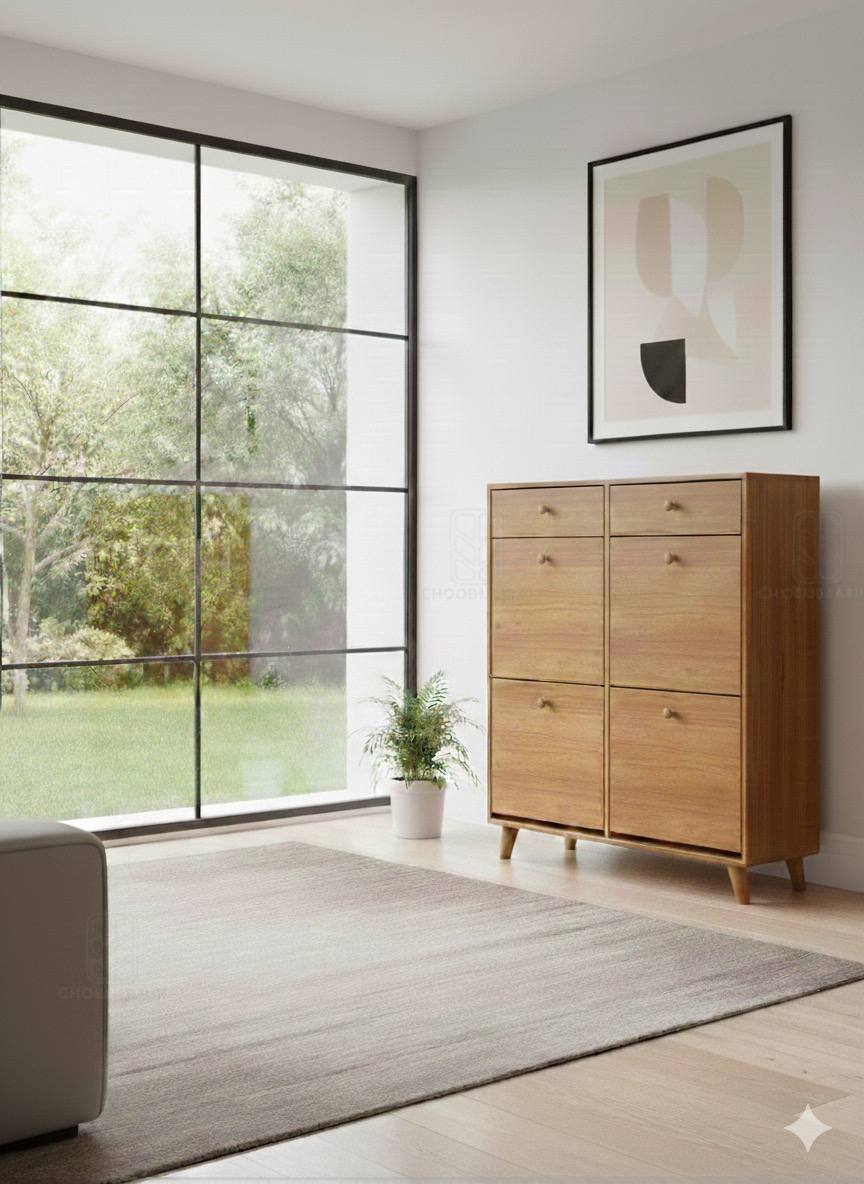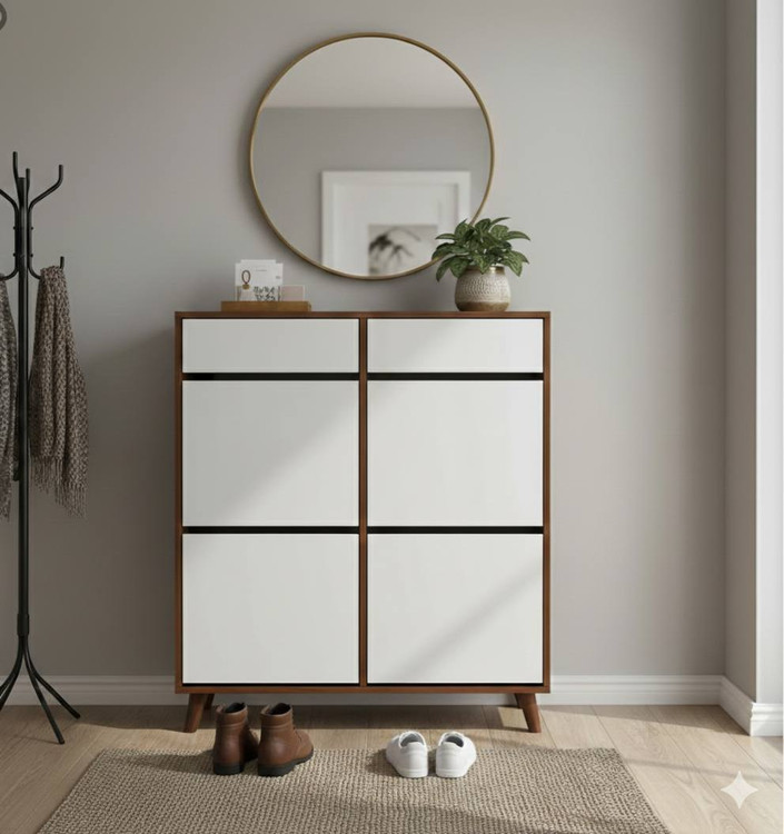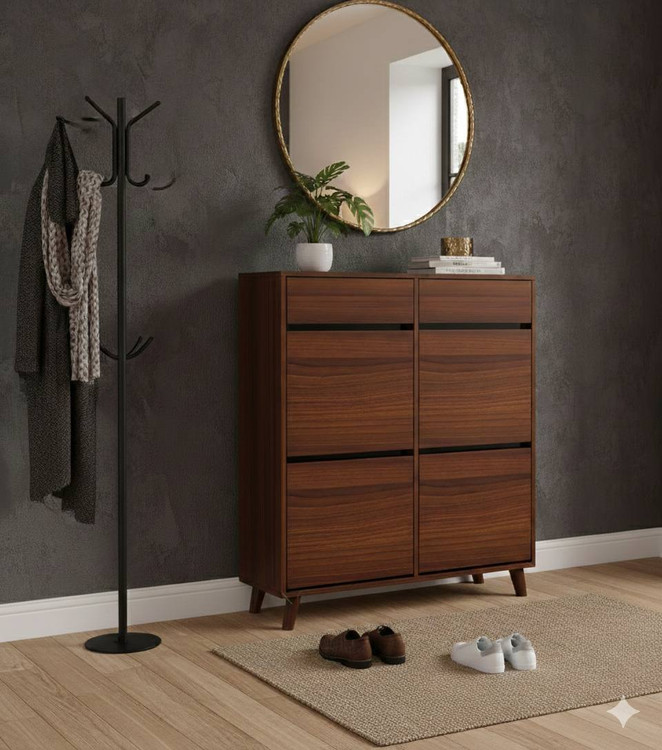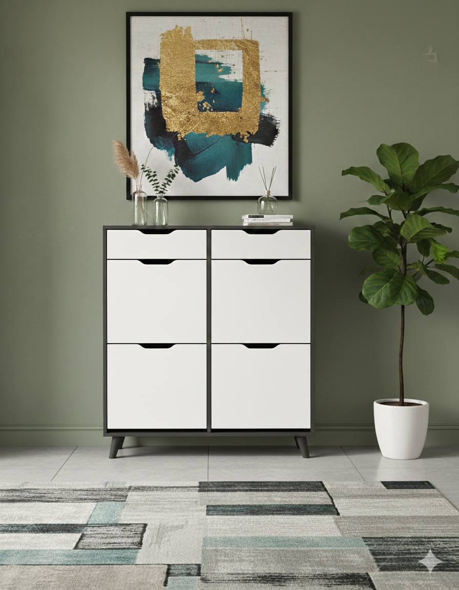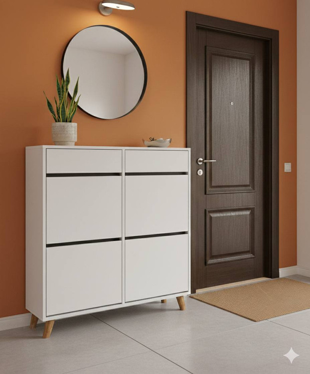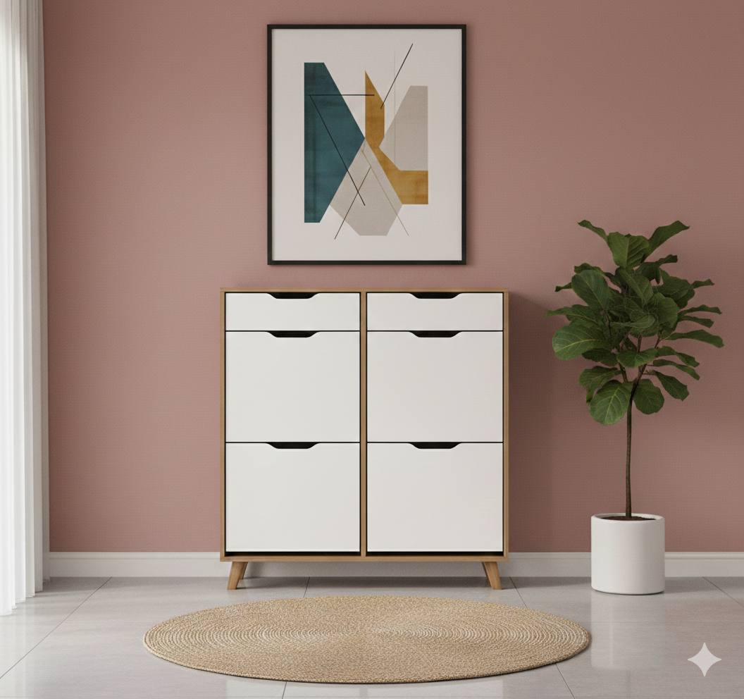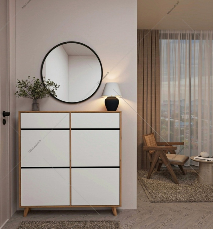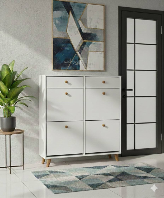 - • این جاکفشی دارای ۴ درب داشبوردی جا دار است که هر کدام توان نگهداری ۴ جفت کفش را دارند و در مجموع فضایی مرتب و منظم برای قرار دادن کفشها در اختیار شما قرار میدهند.