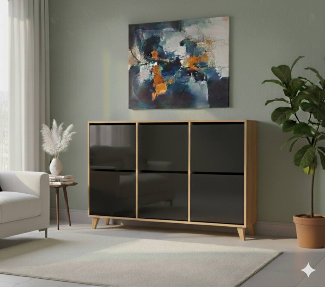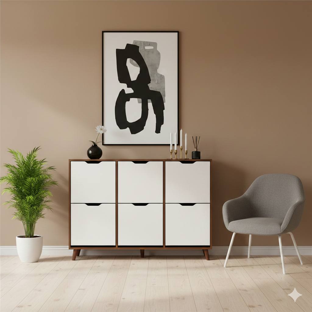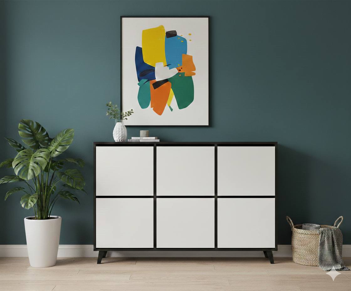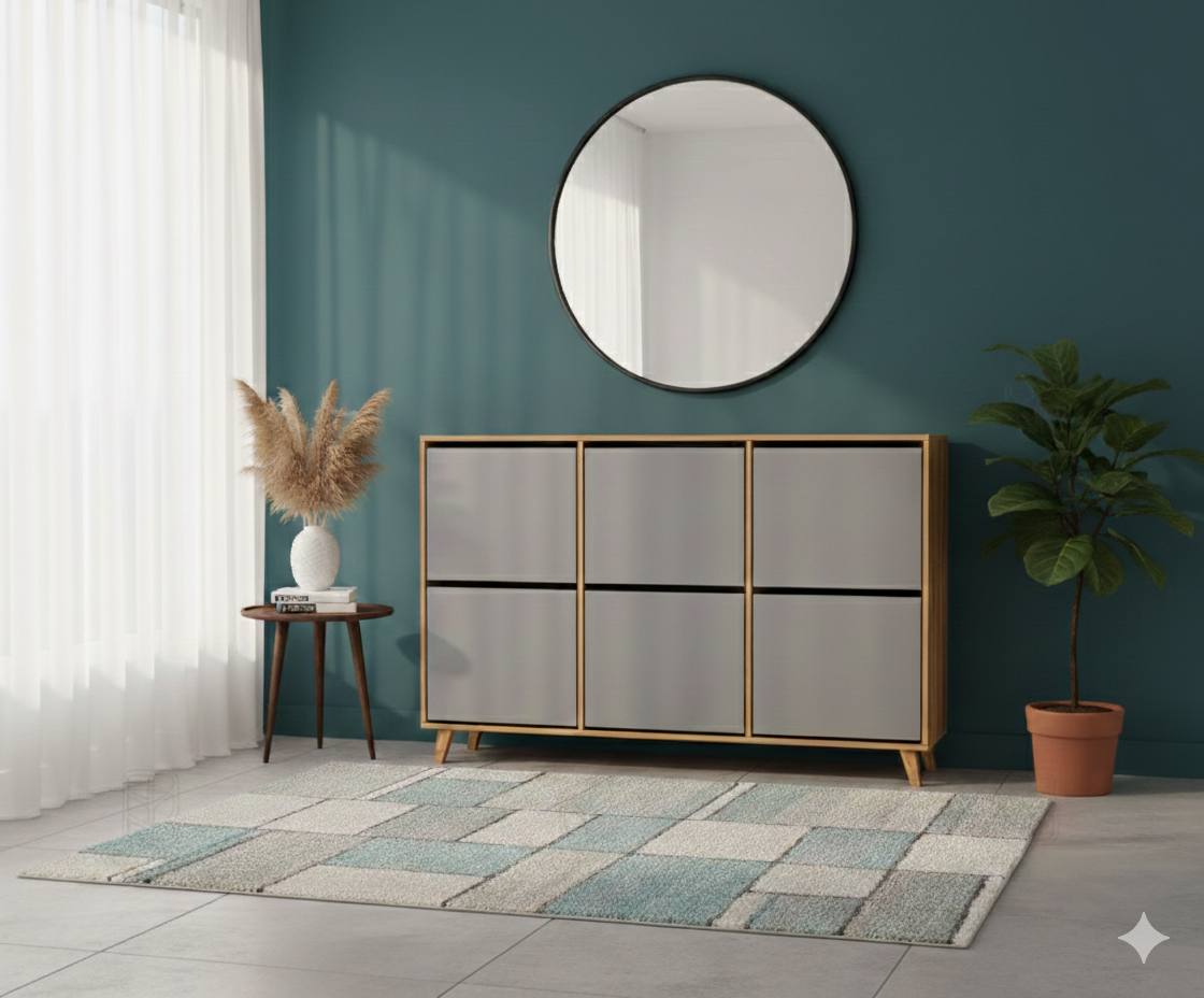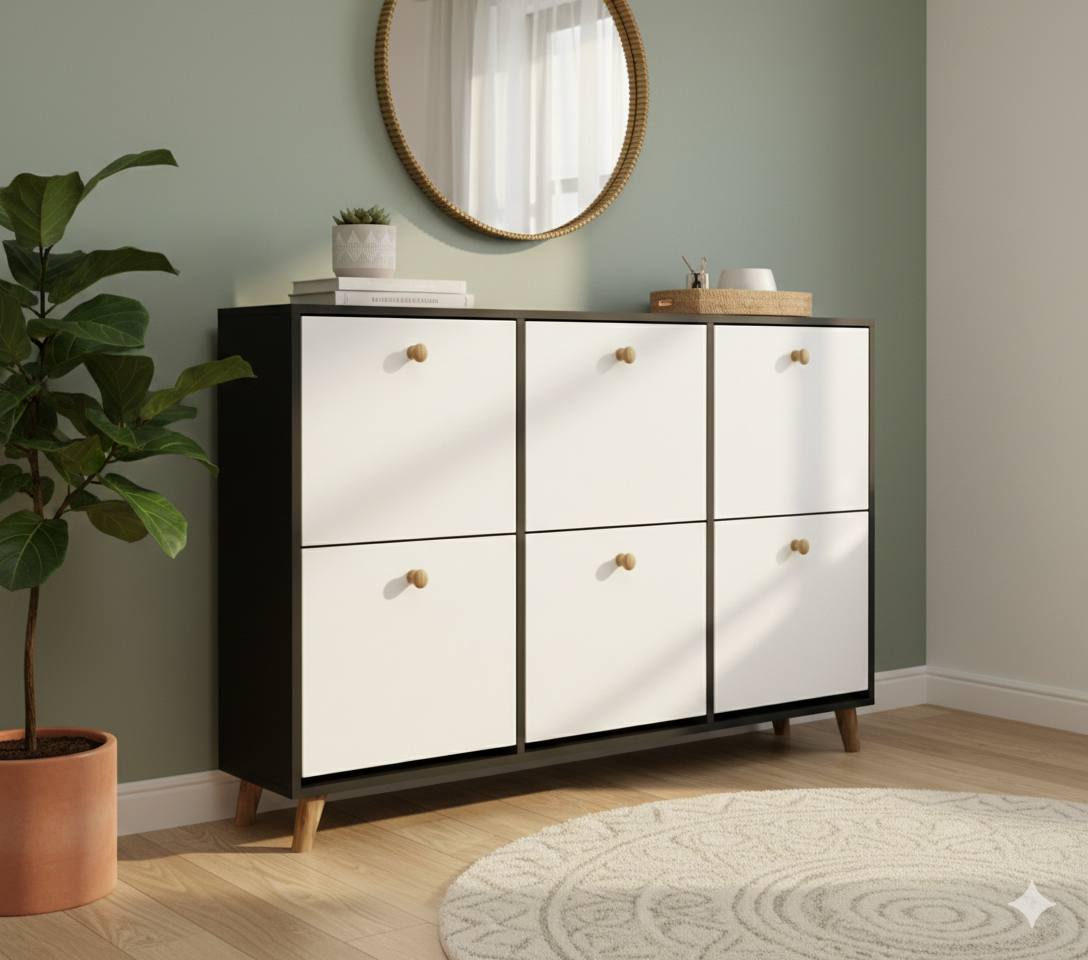 جاکفشی مدل روین با طراحی مدرن و کاربردی، گزینهای مناسب برای نظمدهی کفشها در فضای ورودی منزل است. این مدل دارای ۶ درب داشبوردی بوده و در مجموع ظرفیت نگهداری ۲۴ جفت کفش را فراهم میکند. طراحی شیک و ساده آن باعث میشود علاوه بر یک جاکفشی جادار، بتوان از آن به عنوان آینه کنسول در دکوراسیون ورودی خانه نیز استفاده کرد.