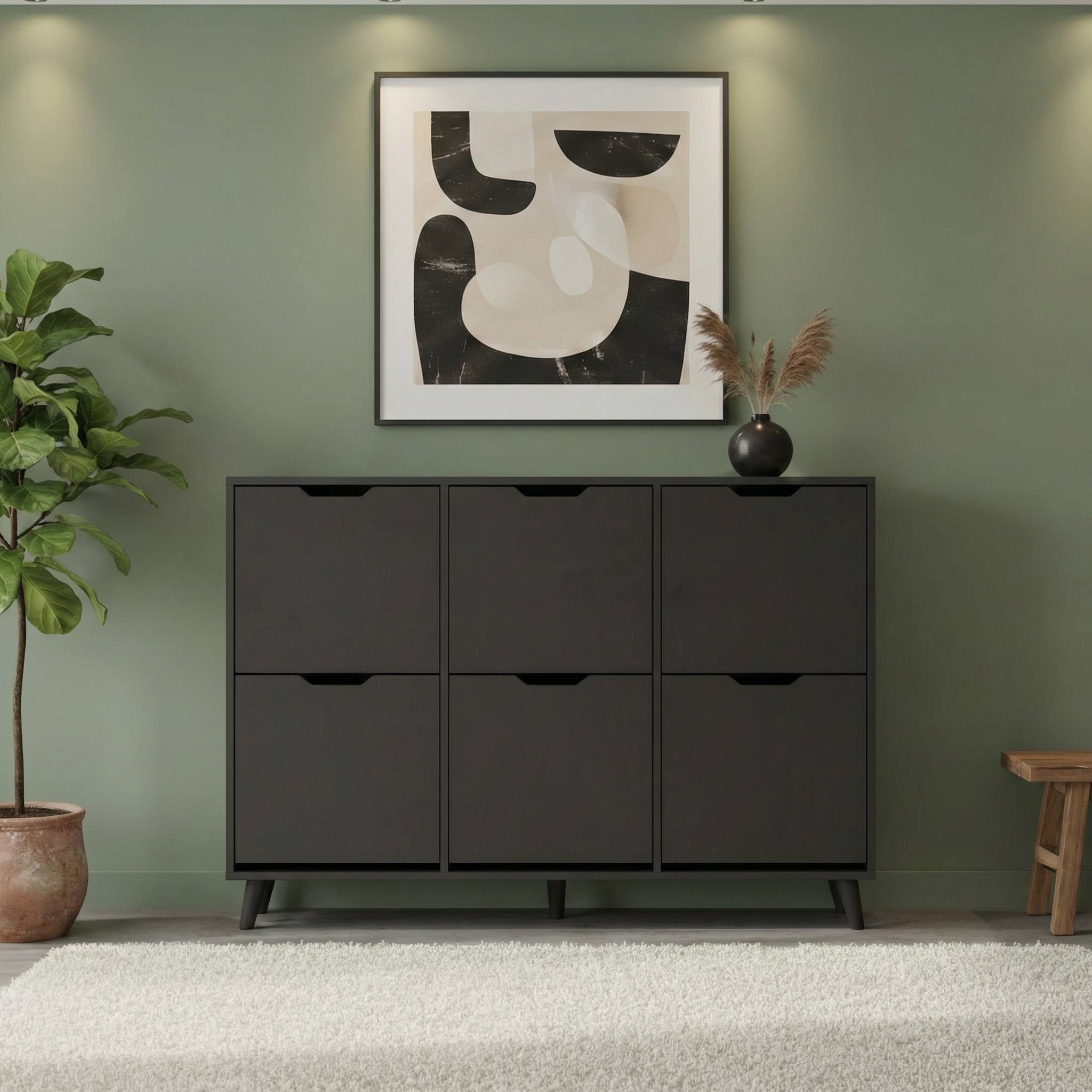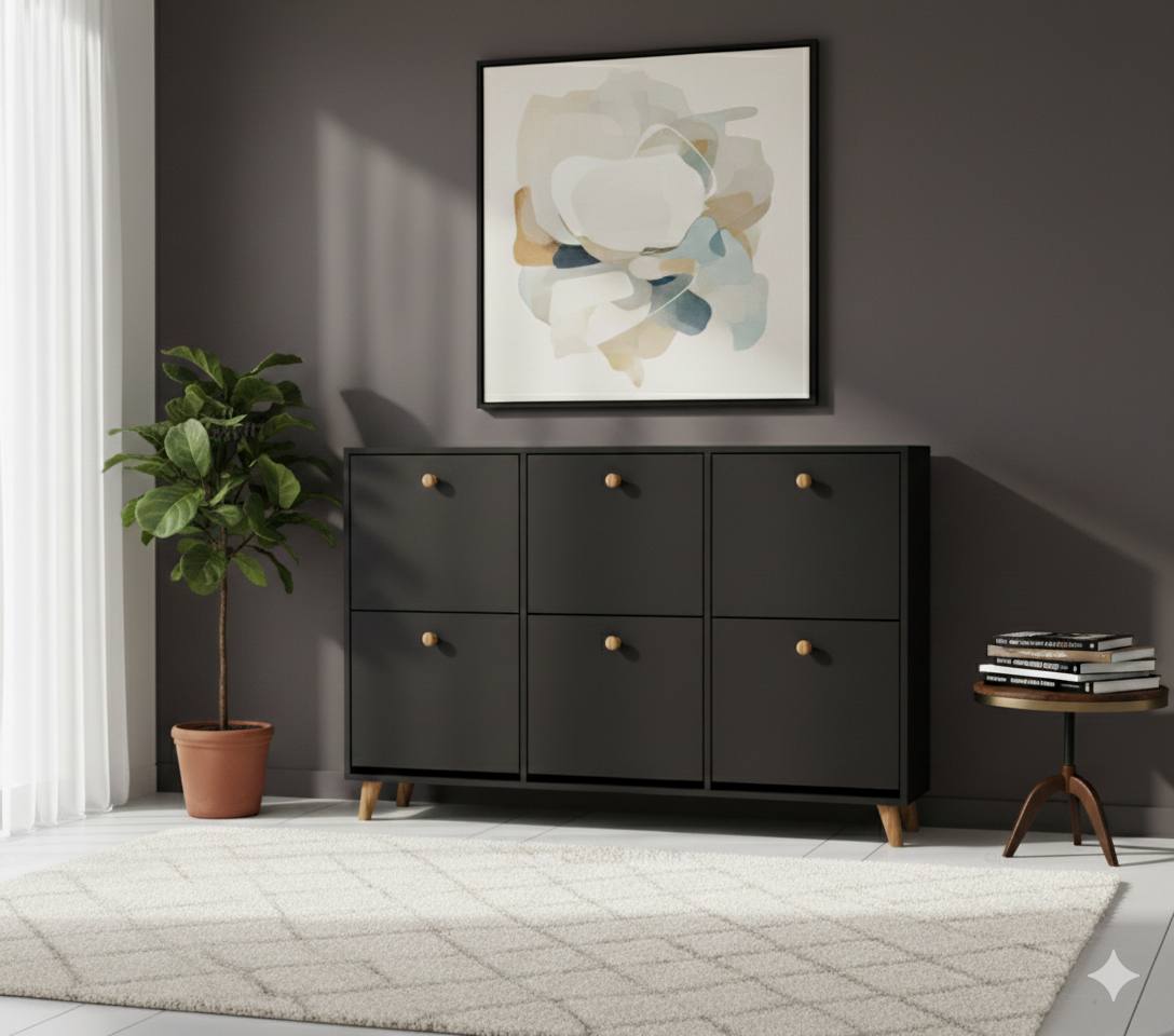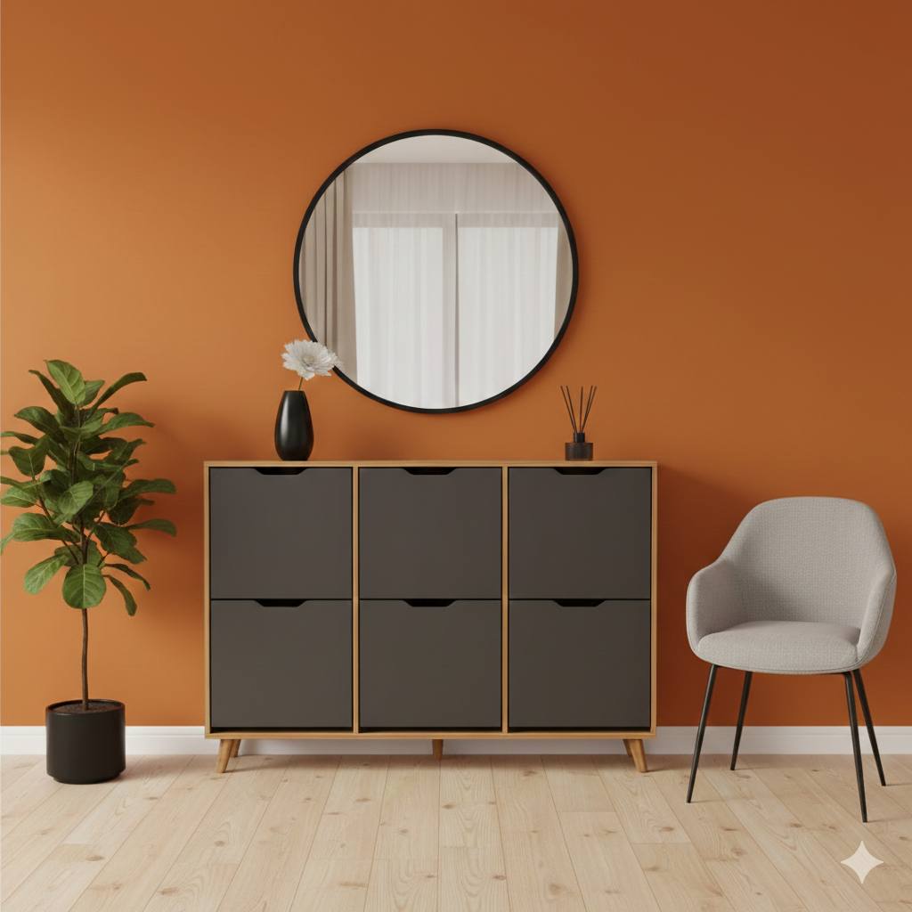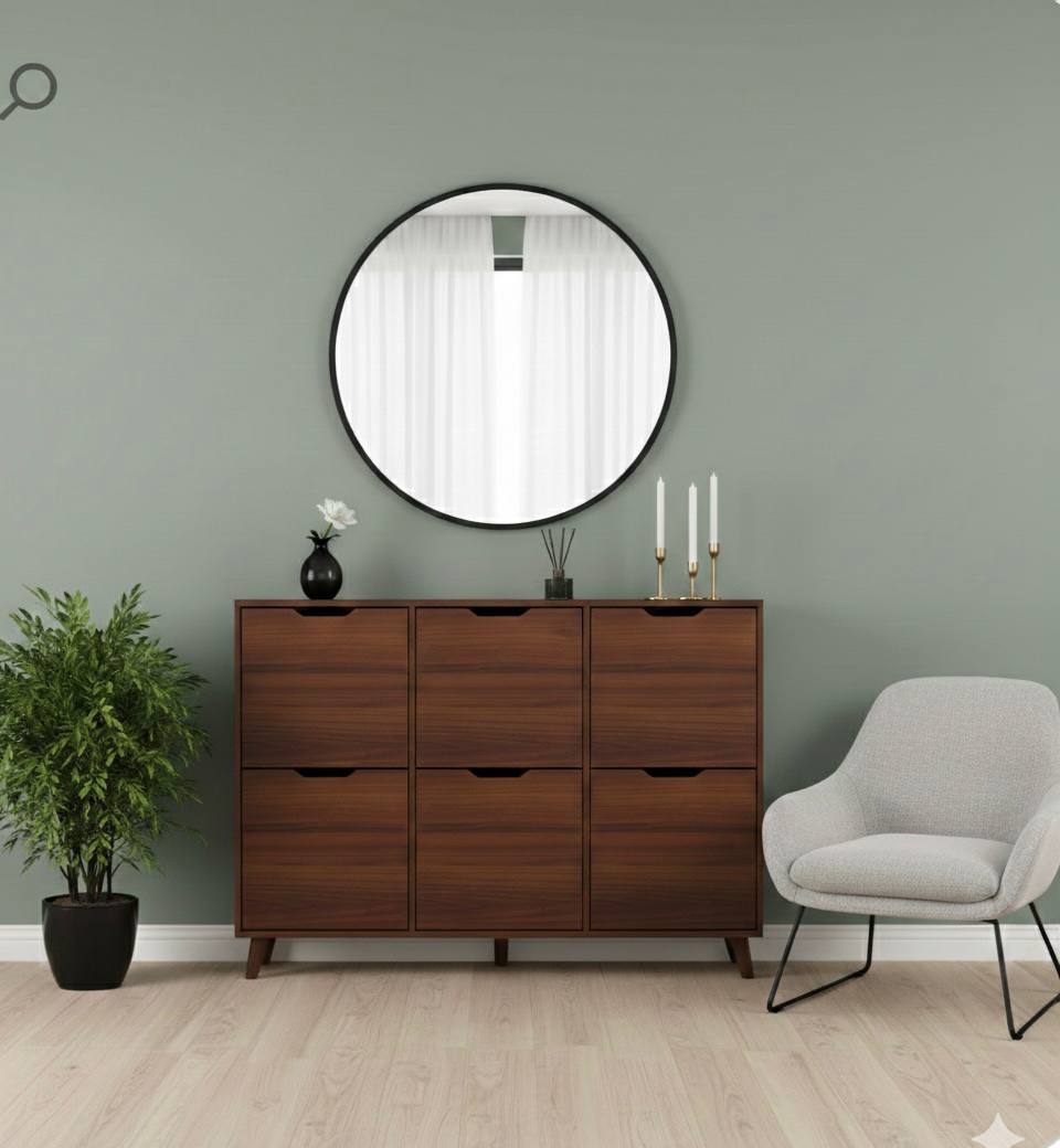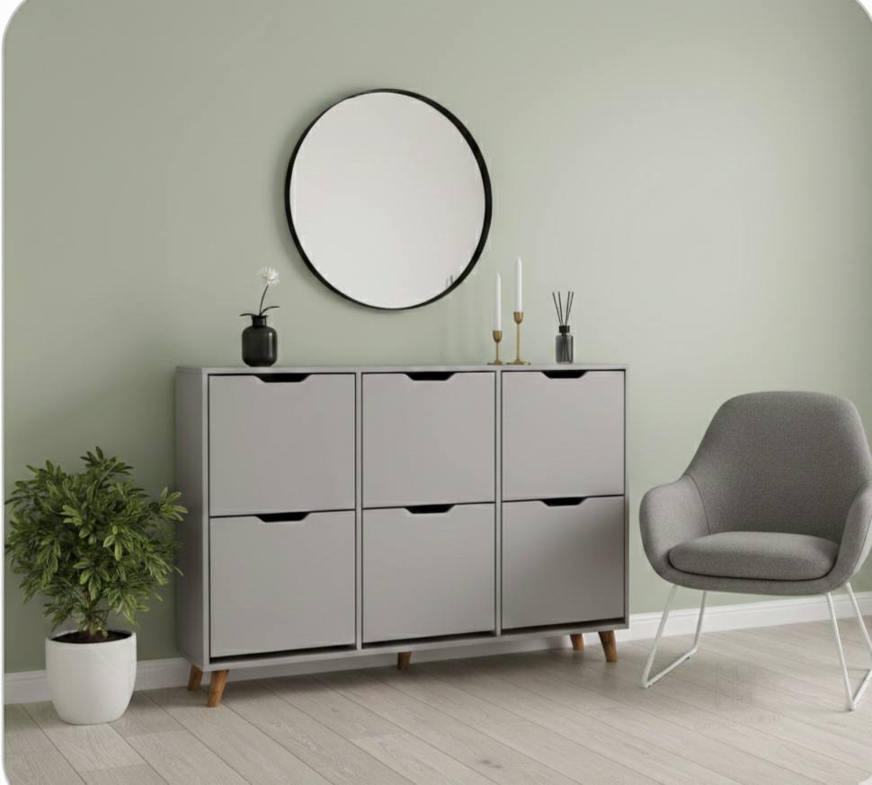 جاکفشی مدل روین با طراحی مدرن و کاربردی، گزینهای مناسب برای نظمدهی کفشها در فضای ورودی منزل است. این مدل دارای ۶ درب داشبوردی بوده و در مجموع ظرفیت نگهداری ۲۴ جفت کفش را فراهم میکند. طراحی شیک و ساده آن باعث میشود علاوه بر یک جاکفشی جادار، بتوان از آن به عنوان آینه کنسول در دکوراسیون ورودی خانه نیز استفاده کرد.
