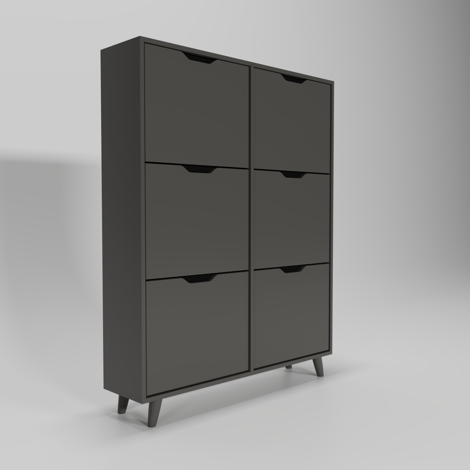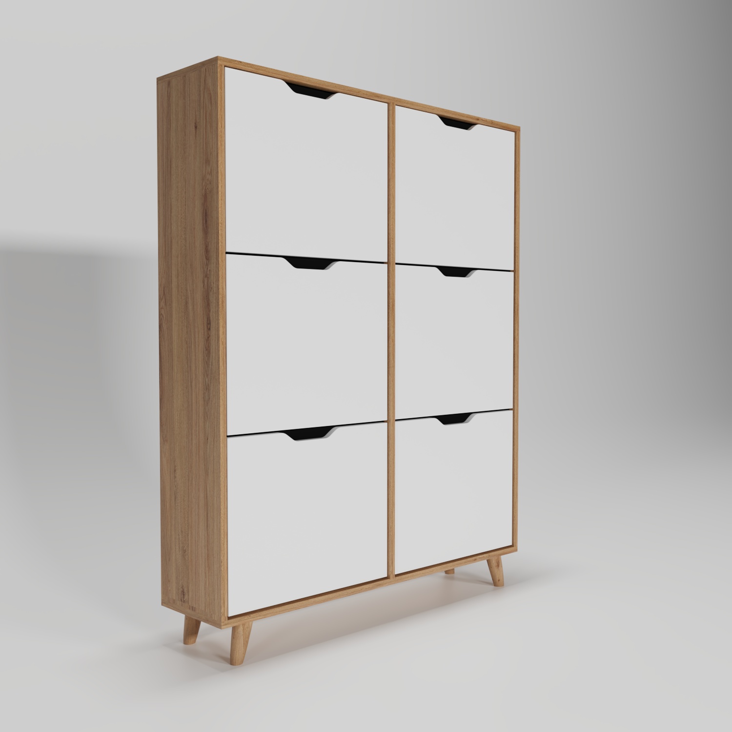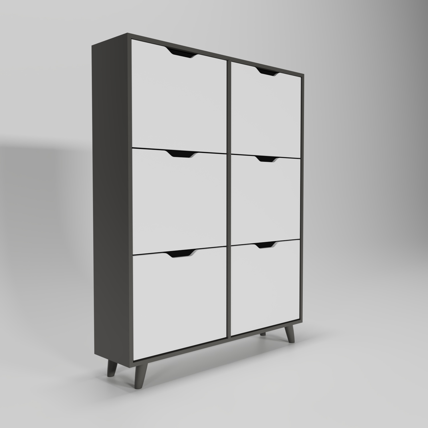 - •در طراحی این جاکفشی از ۳ طبقه مجزا با ۶ درب داشبوردی استفاده شده است؛ بهگونهای که در هر طبقه دو درب داشبوردی قرار دارد. این ساختار علاوه بر ایجاد نظم بیشتر، امکان نگهداری حداکثر ۲۴ جفت کفش را فراهم کرده و دسترسی به کفشها را بسیار راحت میکند.