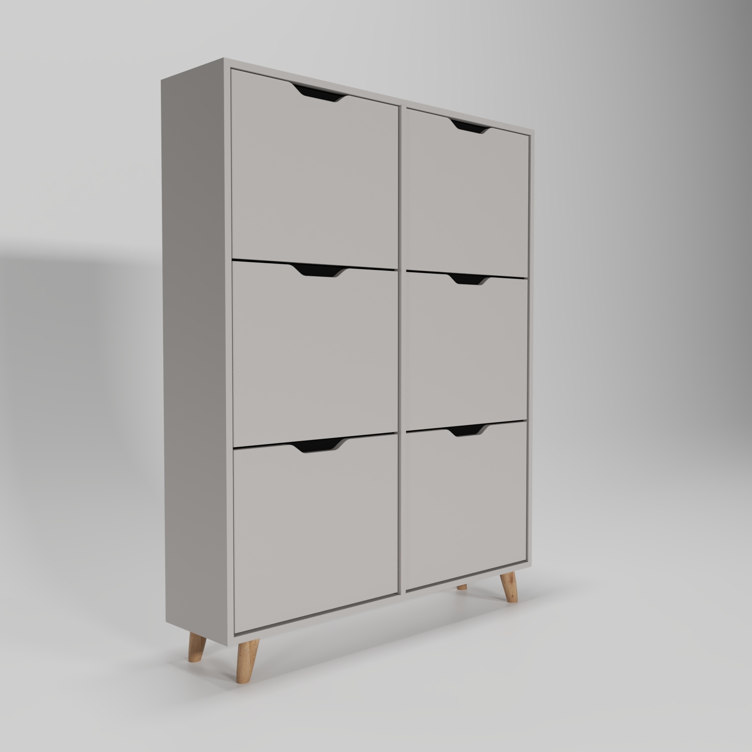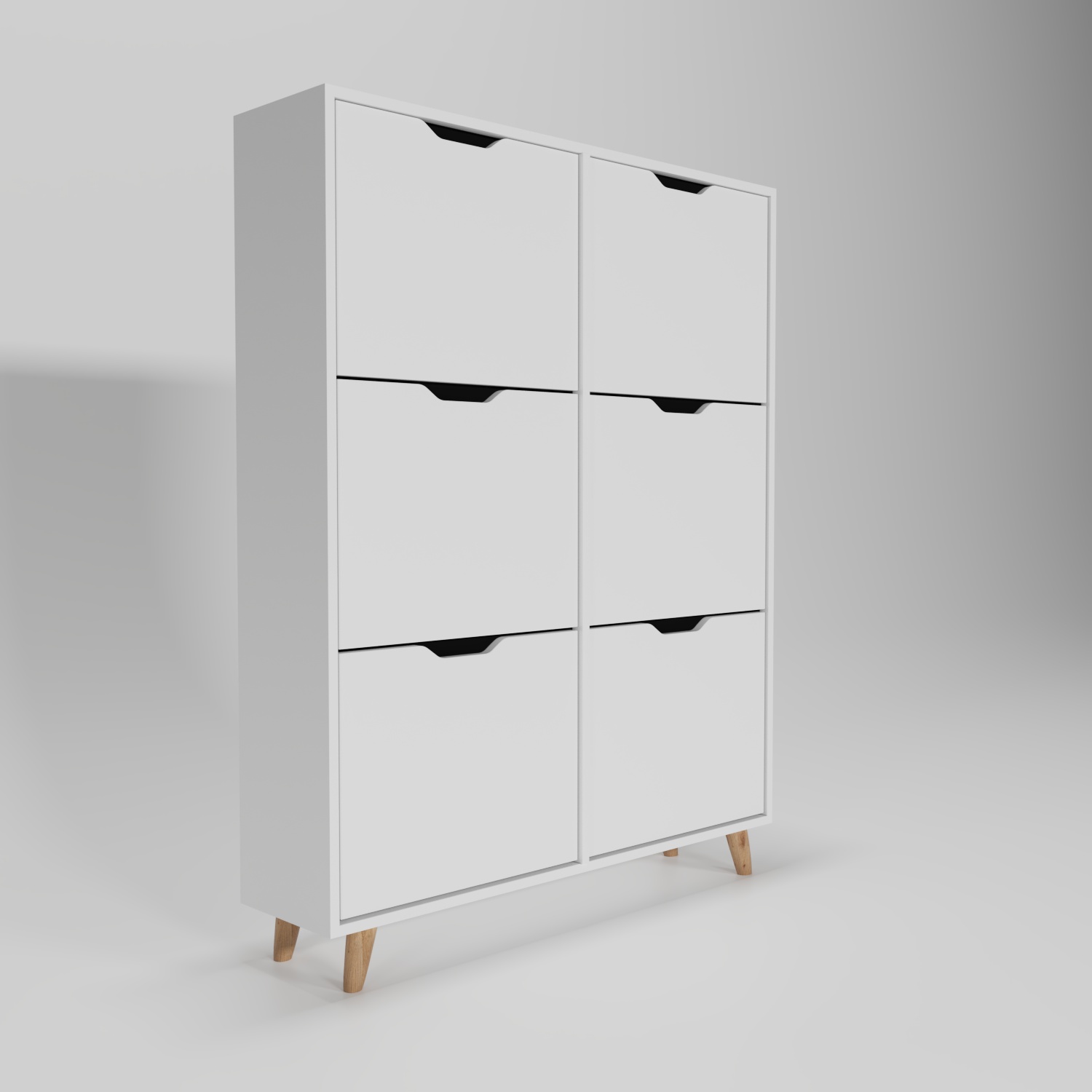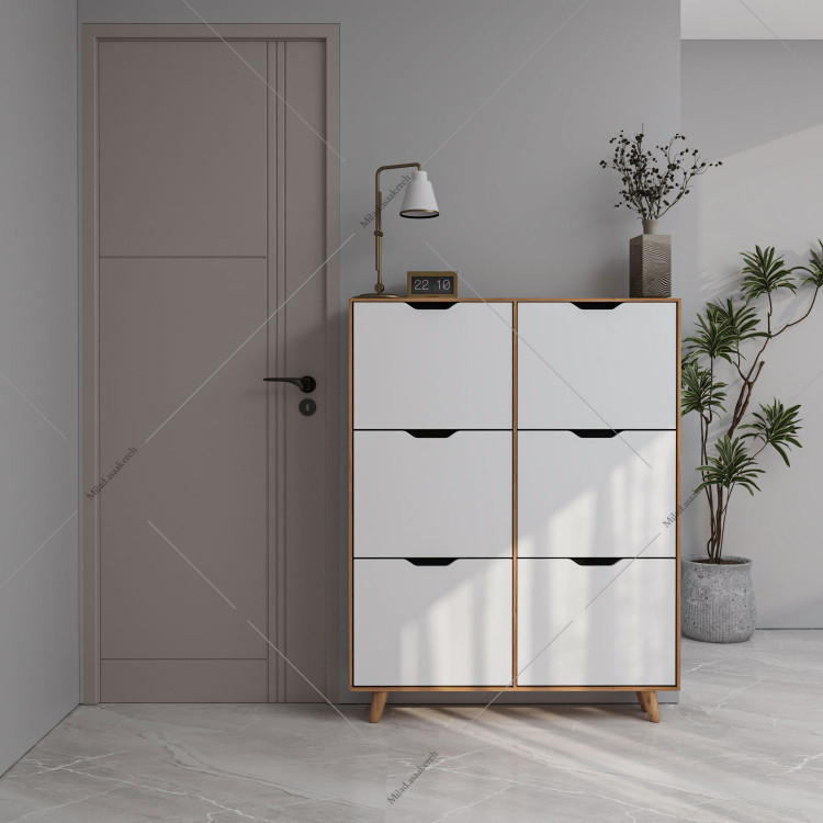 - •در طراحی این جاکفشی از ۳ طبقه مجزا با ۶ درب داشبوردی استفاده شده است؛ بهگونهای که در هر طبقه دو درب داشبوردی قرار دارد. این ساختار علاوه بر ایجاد نظم بیشتر، امکان نگهداری حداکثر ۲۴ جفت کفش را فراهم کرده و دسترسی به کفشها را بسیار راحت میکند.