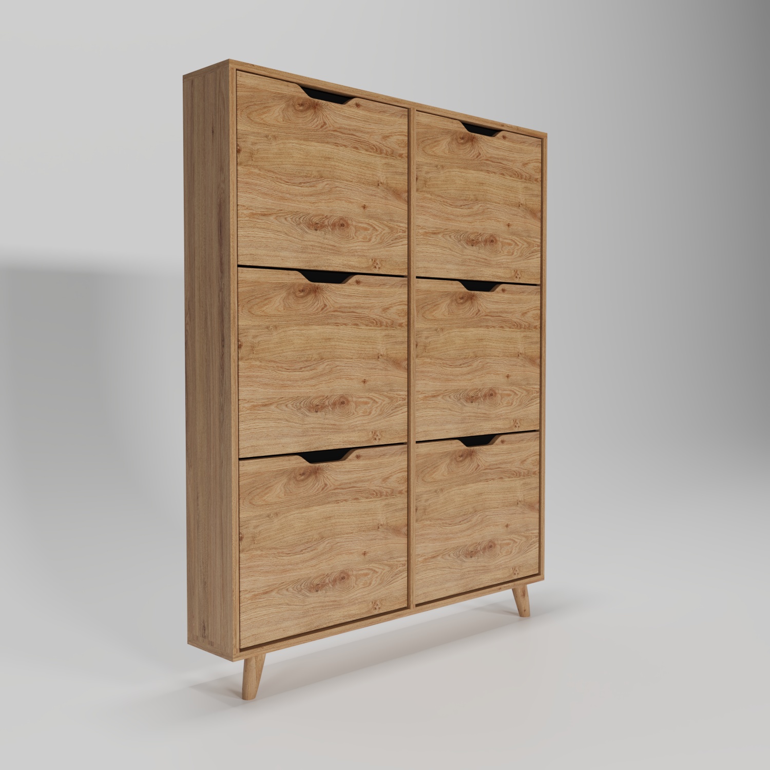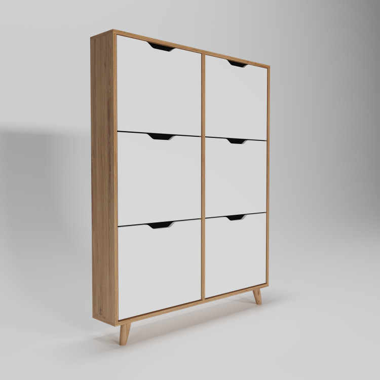 •جاکفشی کمجا با عرض ۱۵ سانتیمتر و طراحی ۶ درب داشبوردی که امکان نگهداری ۱۲ جفت کفش را در فضایی مرتب و منظم فراهم می کنند .
